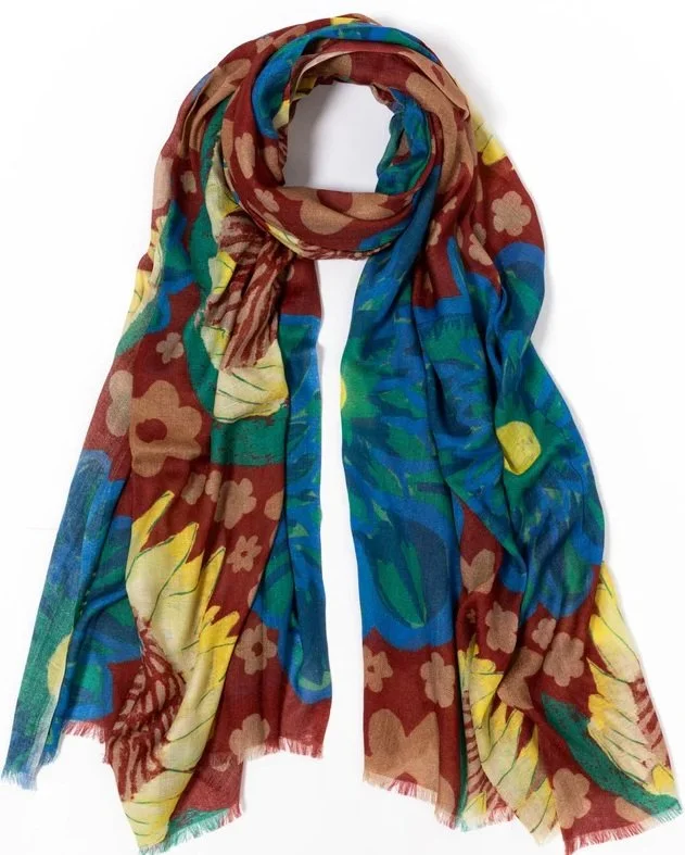 We have some beautiful new scarves for fall from our favorite vendor Lalela and as you know all purchases from the brand go to supporting arts programs in South Africa for at-risk students. The scarves feature the designs of these truly talented artists and we love supporting them! Every one of these new designs is perfect to pair with your winter coat or jacket this season. These scarves are a large rectangle and can be a bit intimidating to style. I typically wear mine draped around my shoulders, the better to show off the amazing designs. If you're looking for some additional ways to style them check this video or this one. I apologize that the videos feel dated and the music is painful, I'll just have to do my own version the next time!