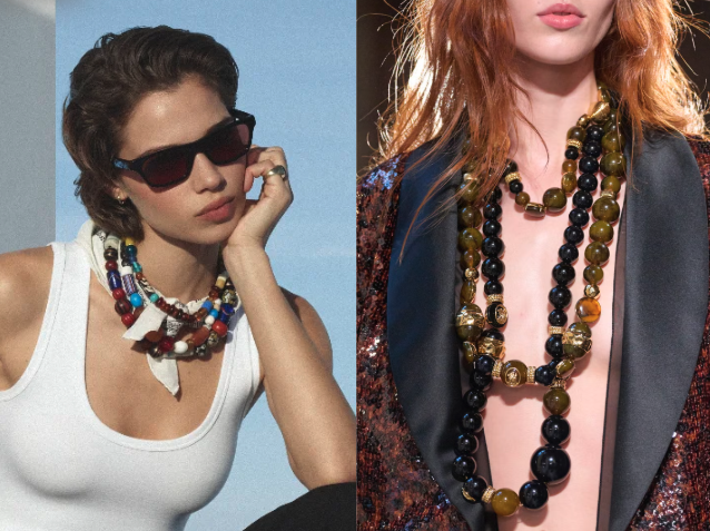 2. Bodacious Beads -- Beads were a big hit on the spring/summer ’26 runways, big beads, little beads, beads made of wood, gemstone, resin, or gold. Any beads will work this spring, as long as you wear them strung on a strand and turn them into a statement. You can do it by starting right here at HOT!